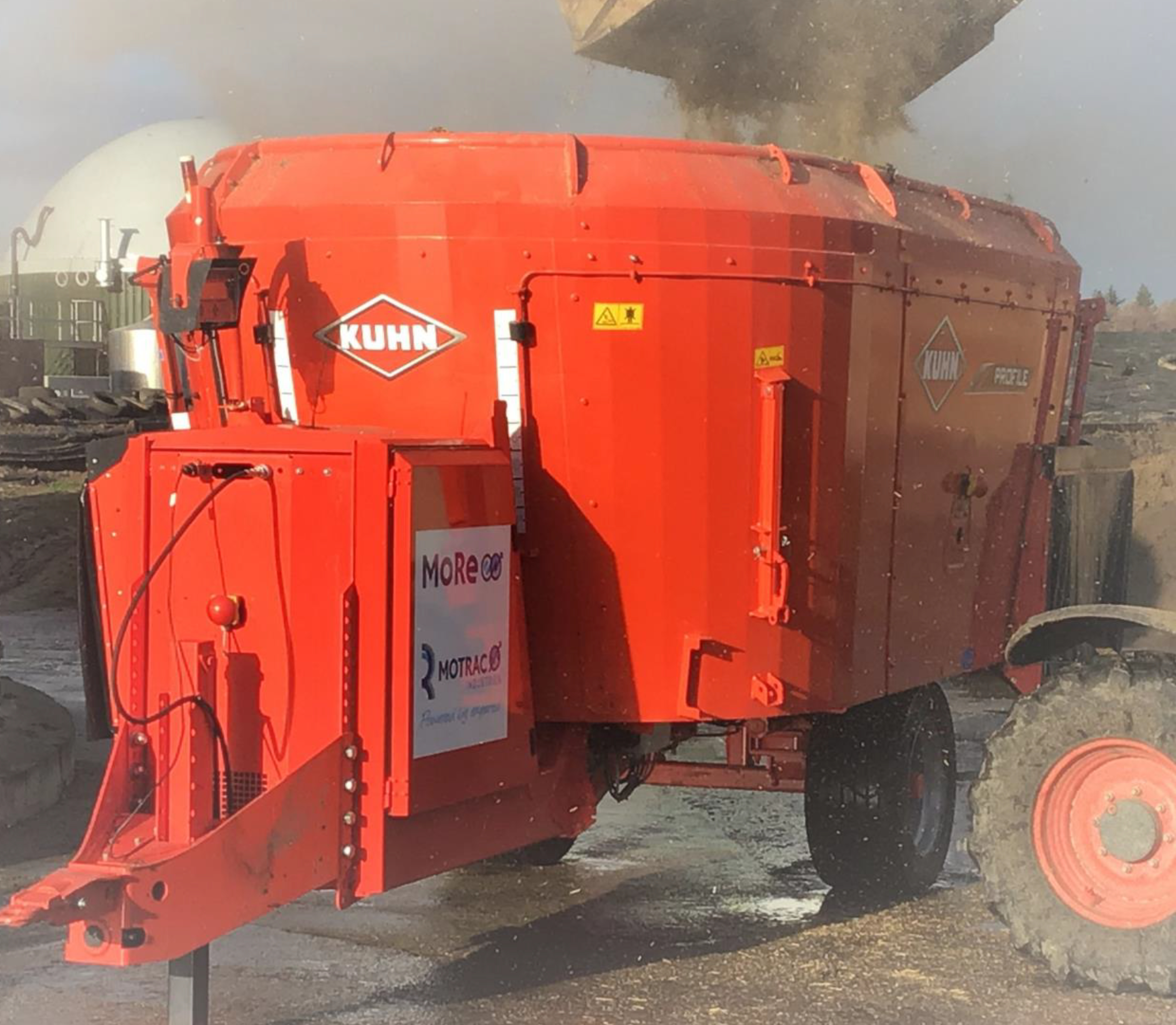 KUHN MoRe E : en partenariat avec Motrac Industries, Kuhn propose d'utiliser l'électricité produite sur l'exploitation pour faire fonctionner sa mélangeuse Profile. Equipée d'une unité à entraînement électrique (MoRe E), la mélangeuse devient indépendante et peut fonctionner sans tracteur.
